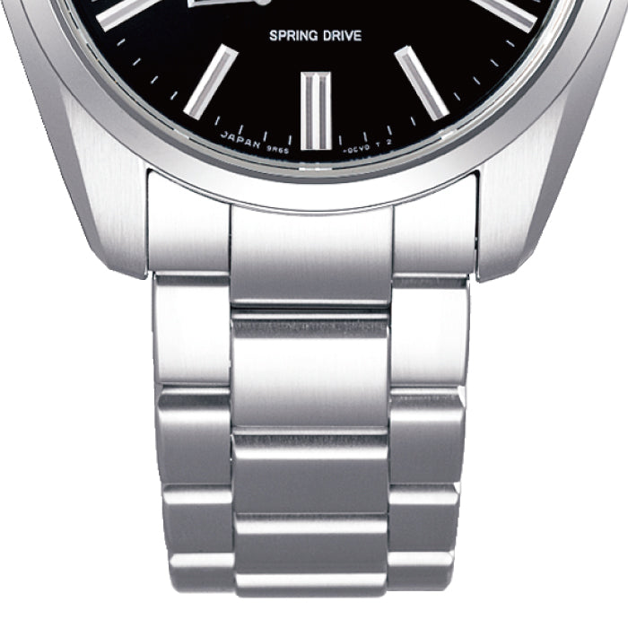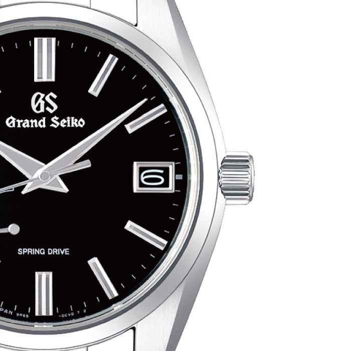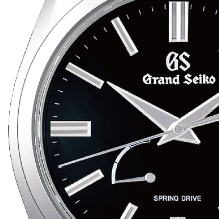 グランドセイコーの王道のケースデザインに、艶のあるブラックダイヤルを組み合わせたモデル