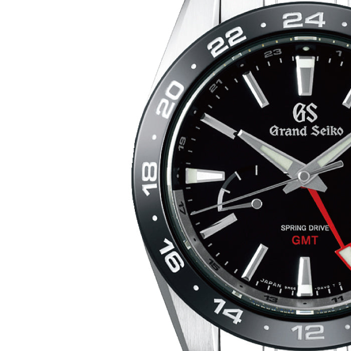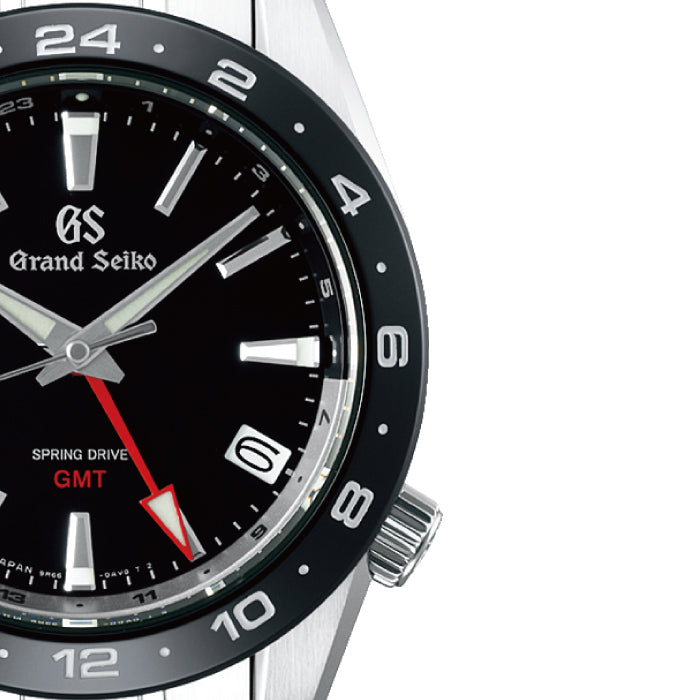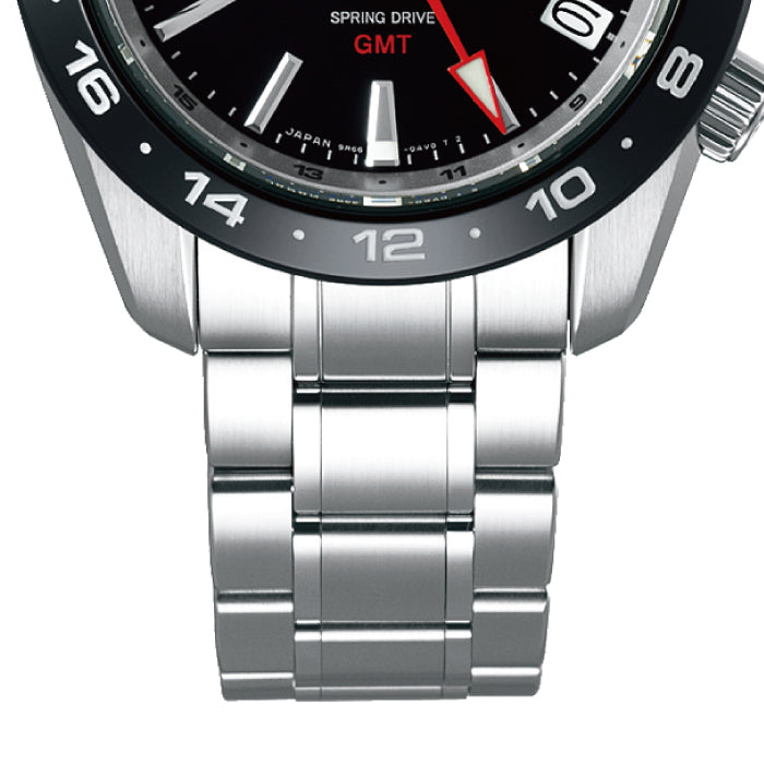 セラミックス製のベゼルを搭載した新時代のスプリングドライブGMT機械式時計に用いられるぜんまいを動力源としながらクオーツ式時計と同等の高精度を可能にした第三の機構「スプリングドライブ」に、GMT表示機能を備えたモデルです。
